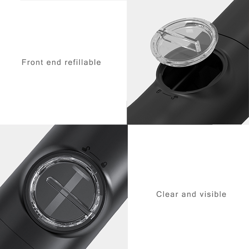 6. Unique design with refillable container in the front, which can hold a huge amount of salt and pepper (70ml)